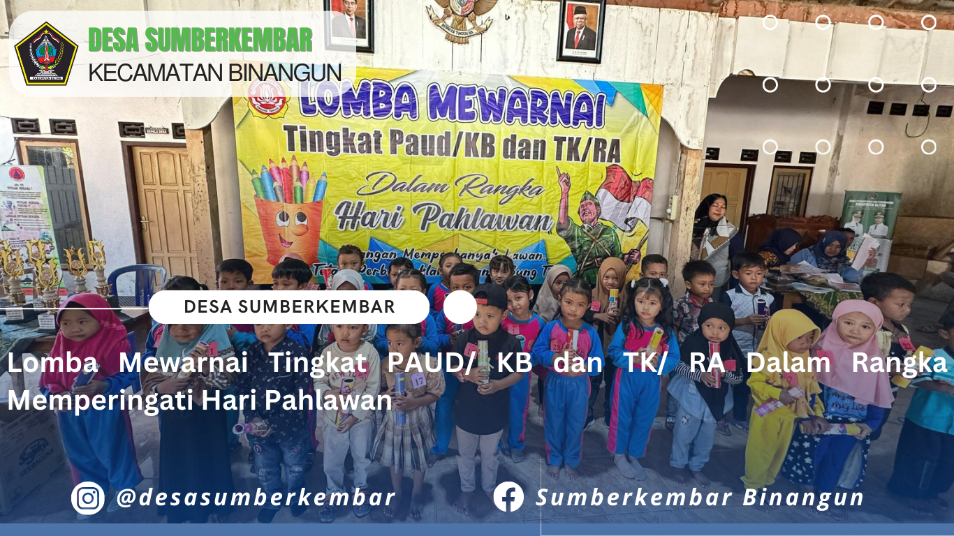 Pada hari Minggu (19/11/2023) Karang Taruna Sumber Yekti Desa Sumberkembar dalam rangka memperingati Hari Pahlawan telah mengadakan Lomba Mewarnai Tingkat PAUD/ KB dan TK/RA yang di ikuti oleh seluruh siswa siswi PAUD dan TK se-Desa Sumberkembar. Kegiatan ini merupakan kegiatan rutinan dari Karang Taruna sendiri dalam memperingati PHBN ataupun PHBI, tahun ini Karang Taruna Sumber Yekti Desa Sumberkembar mengambil tema Hari Pahlawan dengan harapan generasi muda lebih mengenali para pejuang yang sudah memperjuangkan kemerdekaan NKRI itu sendiri selain itu kegiatan lomba ini juga di harapkan untuk menambah wawasan, kreativitas, dan juga kepercayaan diri dari para murid tersebut.